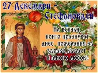 Днес е Стефановден, на третия ден от Коледа, празникът на Св. първомъченик и архидякон Стефан. „Палмата на първенството“ принадлежи на пълния адаш на светеца - 1237 старозагорци. Разновидностите за дами са три: Стефка (698), Стефани (199) и Соня (233). При мъжете има още няколко имена, които се покровителстват от светеца: Станимир (528), Стойко (75) и Стоян (1096).