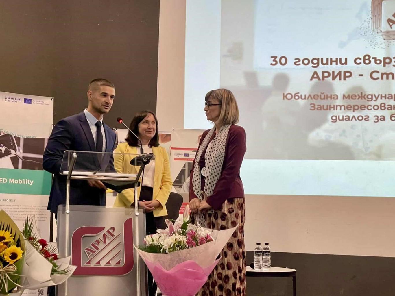 Д-р Неделчо Маринов, областен управител на град Стара Загора, на свой ред приветства организаторите и участниците: „Благодаря ви за това, че сте добрият пример, че сте неуморни и не се спирате пред трудностите. Благодаря за това, което правите за региона и за това, че сте достойно лице пред нашите партньори“. Д-р Маринов връчи Знака на областния управител като символ на признателност към АРИР и д-р Румяна Грозева.