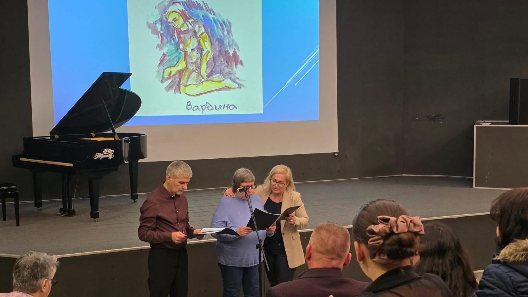 А също и да изпитват сценична треска и да се смущават от изява пред голяма аудитория, стана ясно снощи, когато една от изпълнителките се притесни и спря декламацията. Зам.-кметът Павлина Делчева се присъедини към нея на сцената, за да ѝ вдъхне кураж и да довършат заедно поетичната творба.