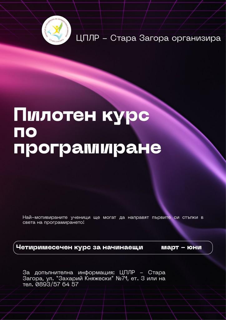 Центърът за подкрепа за личностно развитие - Стара Загора открива възможност за мотивирани ученици да направят своите първи уверени стъпки в програмирането чрез нов четиримесечен пилотен курс за начинаещи. Инициативата е насочена към развитието на логическото мислене, креативността и дигиталните умения, ключови компетентности за професиите на бъдещето.