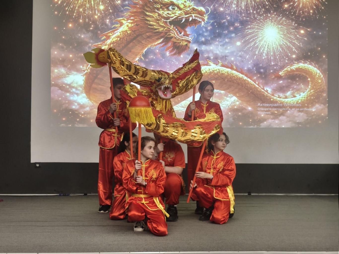 Китайската Нова година поставя началото на Годината на Коня по китайския лунен календар - символ на енергия, движение и стремеж към напредък, които намериха израз в подготвената от учениците и преподавателите празнична програма.