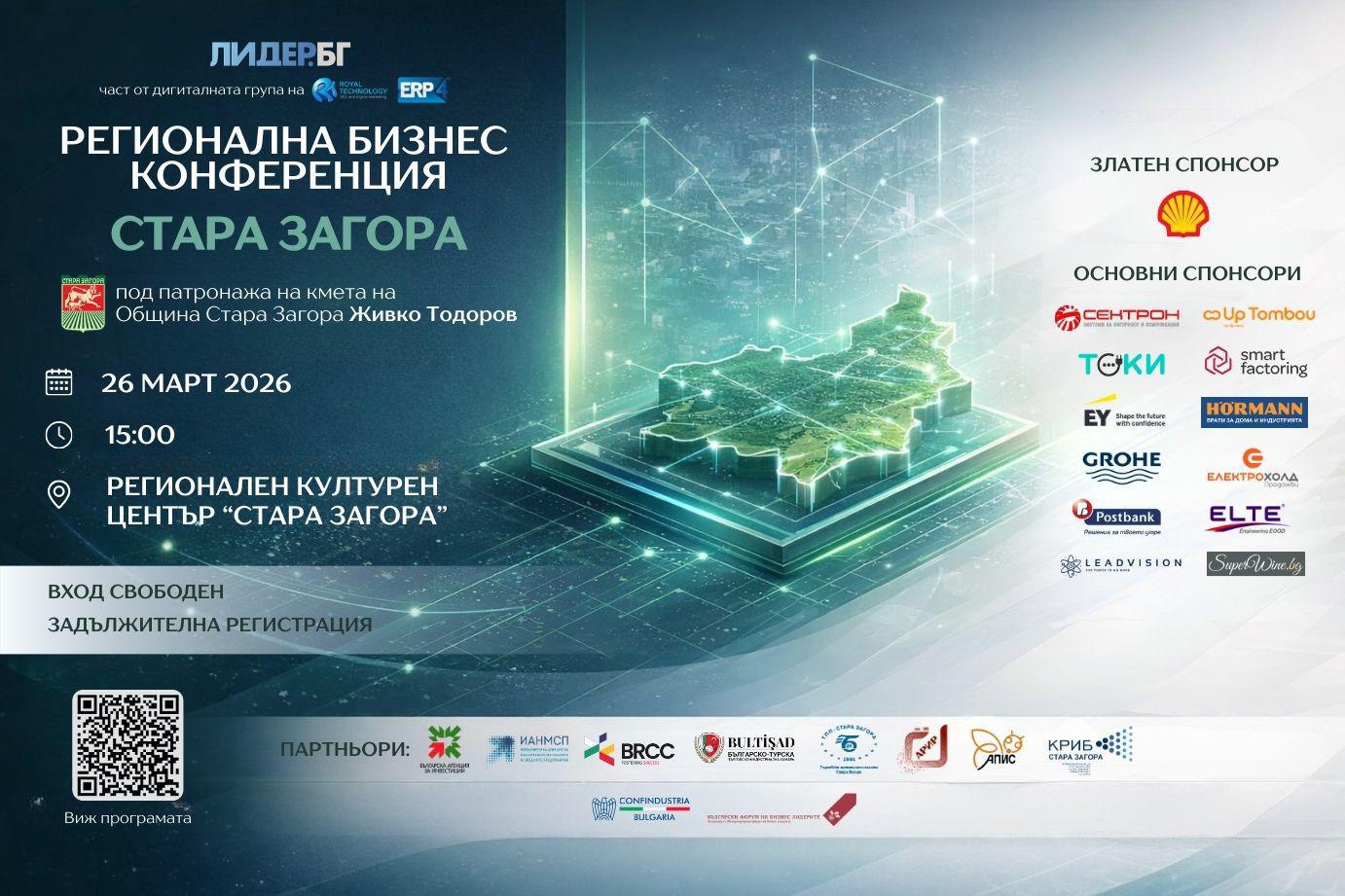 Регионалната бизнес конференция на ЛИДЕР.БГ – Стара Загора 2026 ще се проведе на 26 март 2026 г. от 15.00 ч. в Културен център „Стара Загора“. Събитието се реализира под патронажа на кмета на Община Стара Загора Живко Тодоров и с подкрепата на водещи компании, партньори, бизнес организации и институции, ангажирани с развитието на инвестиционната среда на регионално ниво.