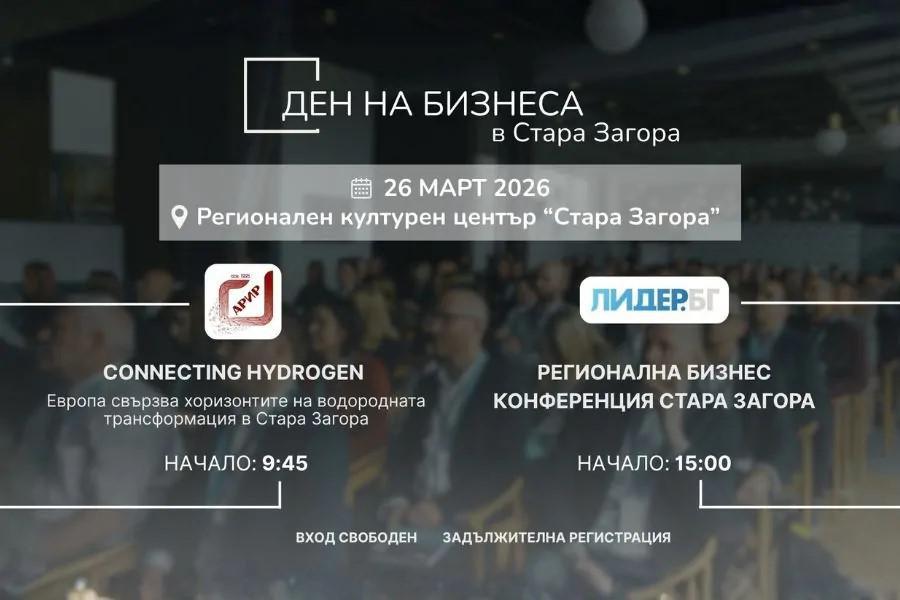 Международната конференция CONNECTING HYDROGEN и бизнес конференцията на Лидер.БГ ще се проведат в Културен център „Стара Загора“ утре, 26 март