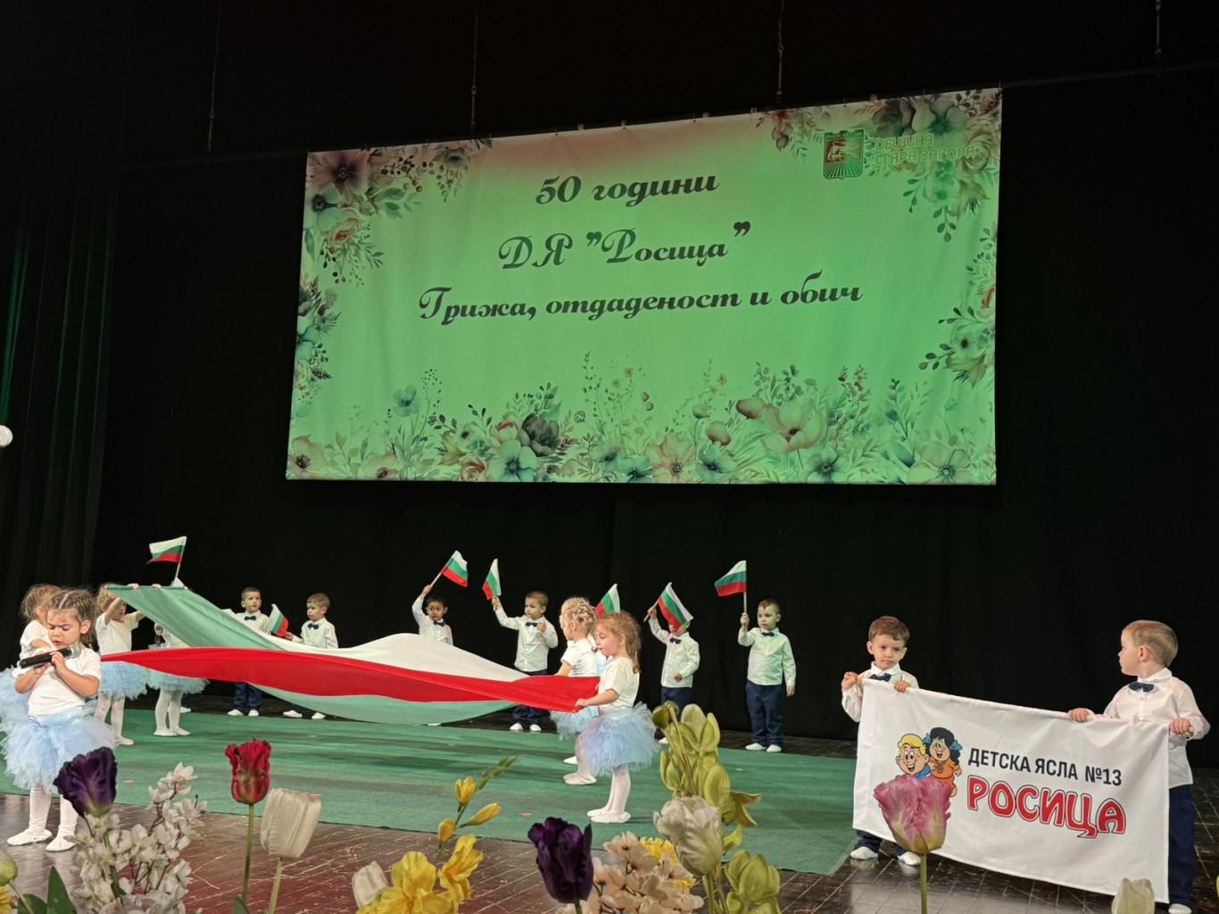 С много усмивки, вълнение и топлина детска ясла №13 „Росица“ в Стара Загора отпразнува своя 50-годишен юбилей в Културен център „Стара Загора“. Основана през 1976 година, яслата вече половин век е място, където поколения деца правят своите първи стъпки извън семейния дом – обгрижвани с внимание, любов и топлота.