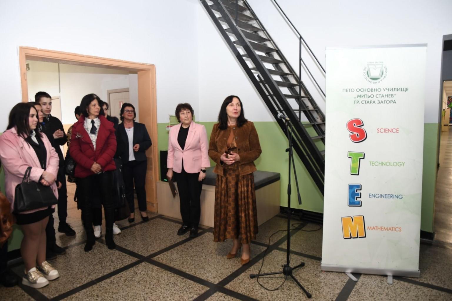 Нов STEM център бе открит в Пето основно училище „Митьо Станев“ в Стара Загора – съвременно образователно пространство, изградено по Оперативна програма „Национален план за възстановяване и устойчивост“, което създава условия за обучение чрез практика, технологии и иновации.