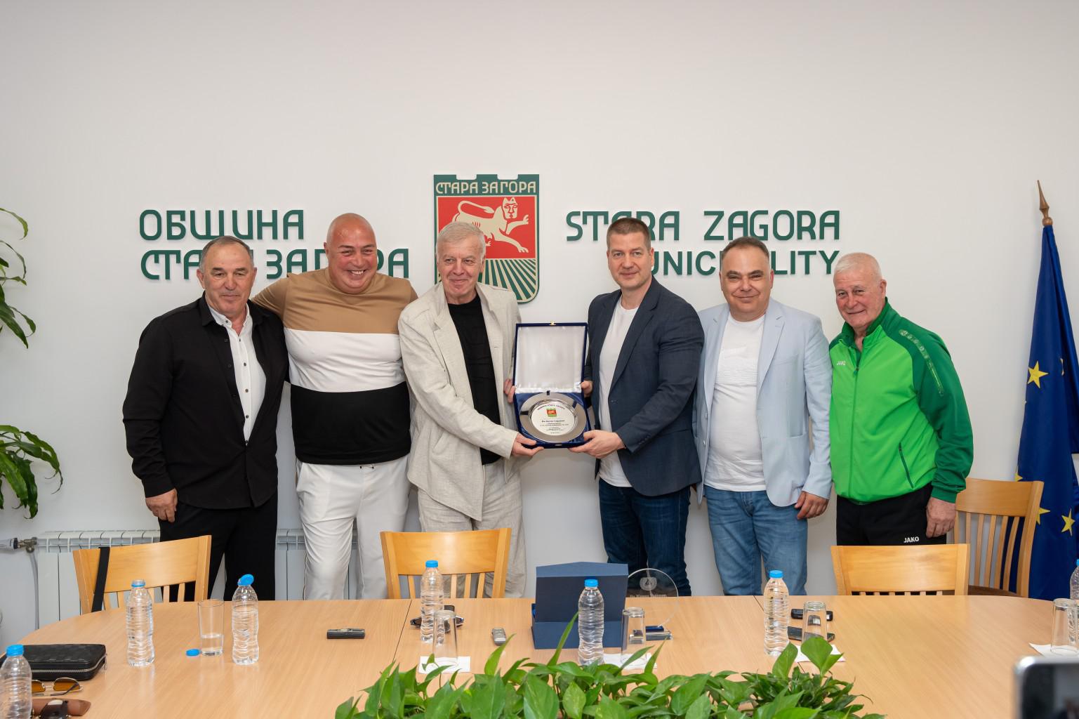 Още в началото на срещата Наско Сираков поднесе на кмета Живко Тодоров плакет от името на ПФК „Левски“ като знак на уважение и признателност. Отличието бе придружено с пожелания за здраве, лично щастие и още професионални успехи в управлението и развитието на Стара Загора