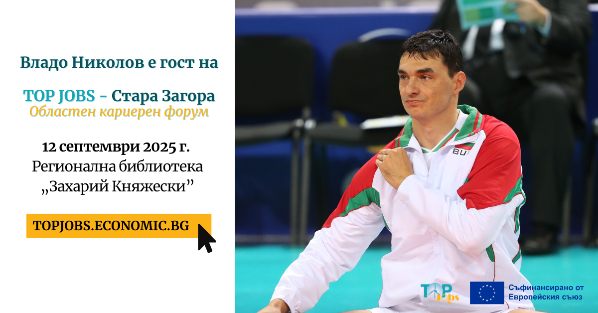 Посетителите на областния кариерен форум TOP JOBS – Стара Загора ще могат да се срещнат и разговарят с един от най-обичаните български спортисти – волейболиста Владимир Николов. Бившият национал ще се включи в тридневното събитие с мотивационна лекция, за да сподели за своя кариерен път, достигането до най-престижните отличия в спорта и да разкаже своя опит как да изграждаме характера си, за да ги достигнем. Кариерният форум се организира от „Бранд Медия България“ и ще се проведе в регионална библиотека „Захарий Княжески“ в град Стара Загора между 11 и 13 септември, а участието на Владо Николов ще бъде на 12 септември 2025 г. от 12.00 ч.