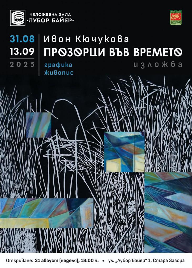 Изящни графики и колоритни живописни творби ще представи в Изложбена зала „Лубор Байер“ талантливата млада художничка Ивон Кючукова. Експозицията „Прозорци във времето“ ще бъде открита на 31 август 2025 г. (неделя), от 18.00 ч. и може да бъде разгледана до 13 септември 2025 г.