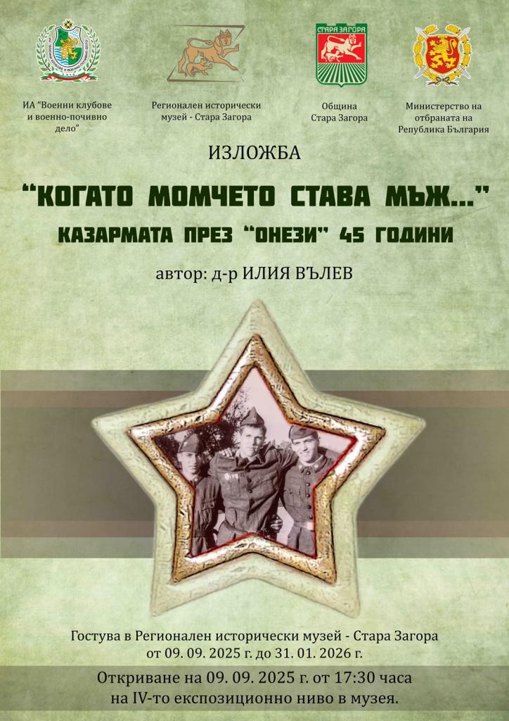 В Регионален исторически музей – Стара Загора, на 9 септември 2025 г. от 17.30 ч. на четвърто експозиционно ниво, ще се открие изложбата „Когато момчето става мъж…Казармата през „онези“ 45 години“