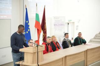 От името на студентската общност приветствие поднесе Майкъл Околи– студент в четвърти курс в специалност „Медицина“. Той сподели своя личен опит от първите години в България и насърчи новоприетите студенти да бъдат търпеливи и отворени към новата среда, подчертавайки, че адаптацията изисква време, но университетът предлага подкрепяща и приятелска общност.